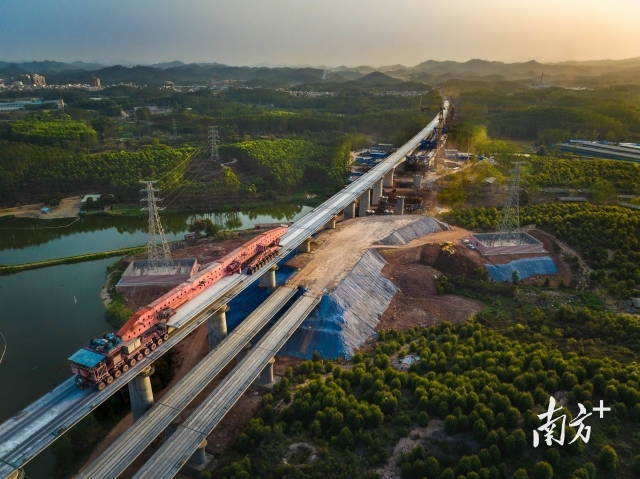 近日,广湛高铁机场段最长桥梁——跨宋隆河特大桥箱梁架设任务完成,跨宋隆河特大桥箱梁架设功课跨度大,屡次穿越城镇东谈主口密集区和S272省谈等各级谈路多少条,全桥与珠肇高铁泄漏交叉功课,施工难度大,安全风险高。笃定>>