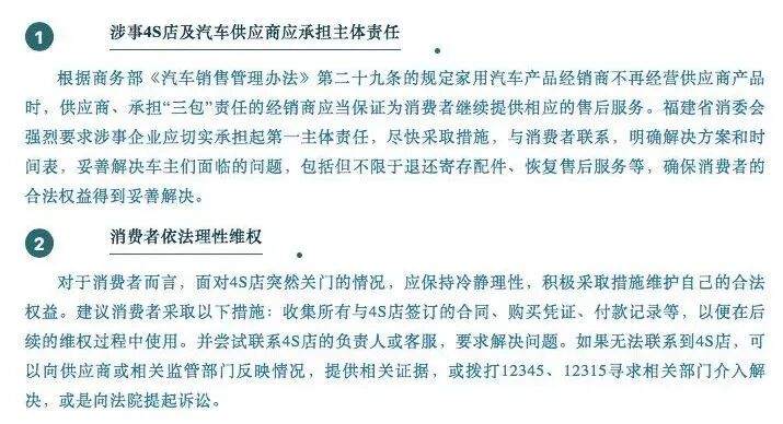 福建省消保委官微 11 月 21 日发文露出,福州中宝、福建星德宝等多家良马 4S 店近日一刹关门,东说念主去楼空,导致繁多车主濒临下订后无车可提、汽车配件无法取回、售后劳动无法进行等困境,"这一事件激发了世俗的社会关爱和车主们的强烈不悦。"
