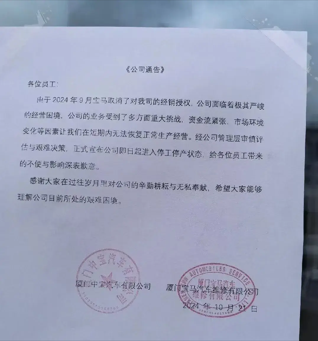 据《都市 · 快报》报说念,10 月 21 日,厦门中宝发布《公司秘书》。秘书本色指出,因 9 月良马取消了对厦门中宝的经销授权,厦门中宝濒临极其严峻的运筹帷幄困境,厦门中宝的业务受到多方面要紧挑战,资金流垂危、市集环境变化等身分令厦门中宝在短期内无法收复平方坐蓐运筹帷幄,参加停工停产景象。